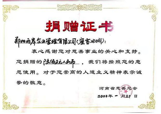 1月30日,郑州两岸企业管理有限公司(蜜雪冰城)捐赠700万元用于抗击新型冠状病毒感染的肺炎疫情。同时向全国7000余家门店做出重要预防部署,持续高度配合当地政府,做好疫情防控与消费者安全相关工作。